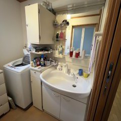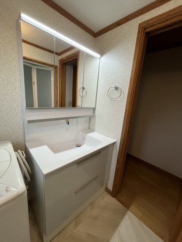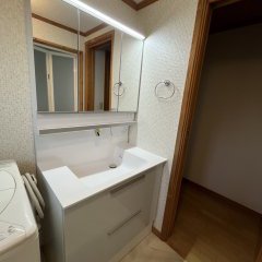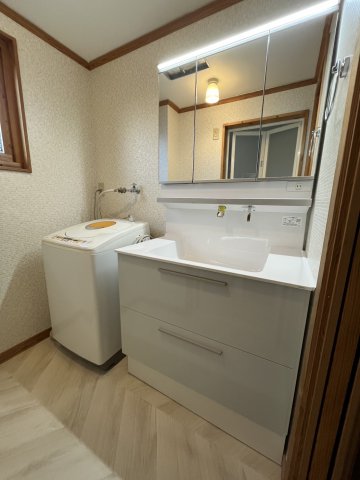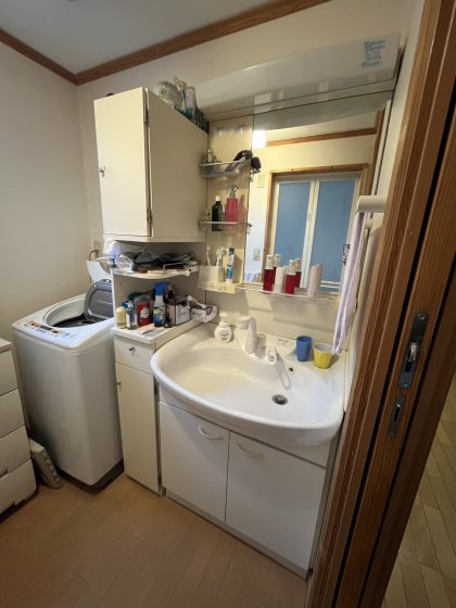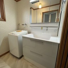 収納棚を撤去し、間口750→900の洗面化粧台に交換しました。