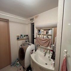 洗面台はタッチレス水栓でTOTO独自のキレイ除菌水が出るタイプの洗面台になっております。