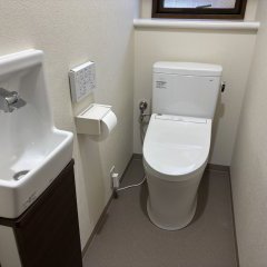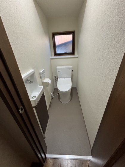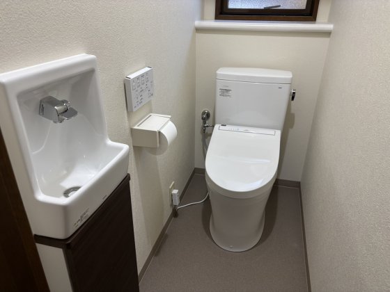 タンク式トイレの交換・手洗い器の交換・内装の張り替えを行いました!