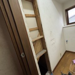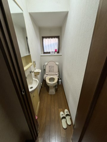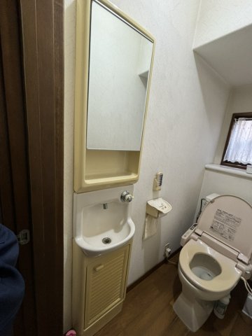 手洗い器の上は鏡付きの埋め込み収納でしたが、