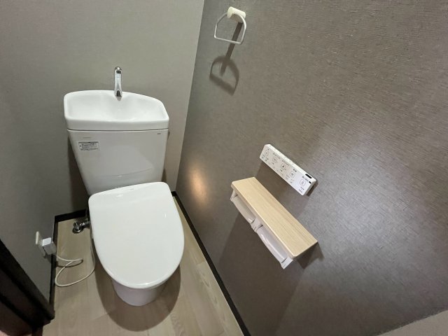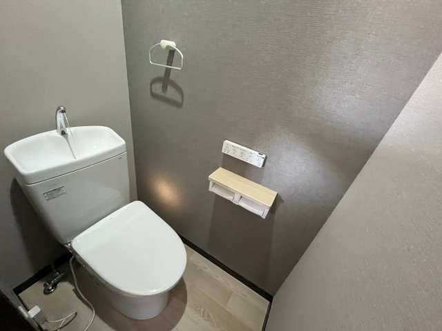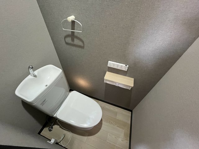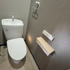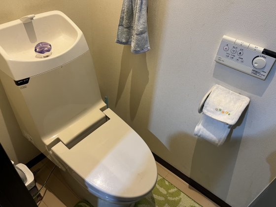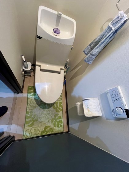 トイレの交換に合わせて、天壁クロス貼替と床のクッションフロアを施工しました。