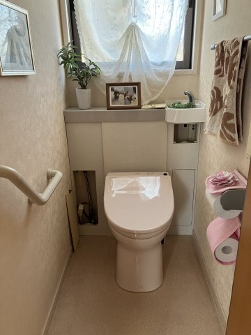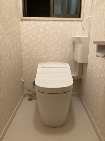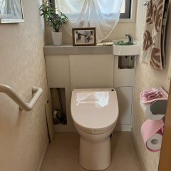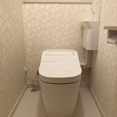 以前は棚手洗い付きのトイレでしたが、今回は棚を撤去し、内装を張り替えてトイレ交換しました。