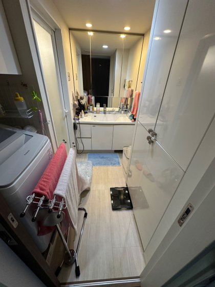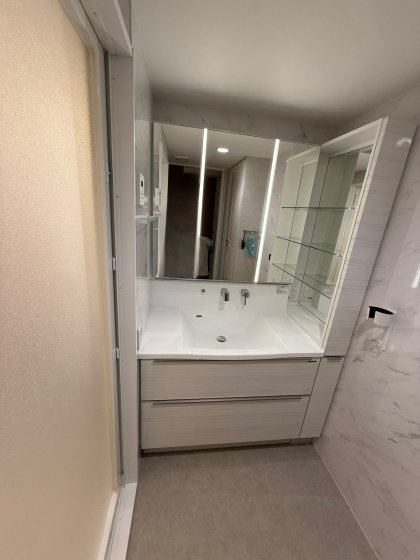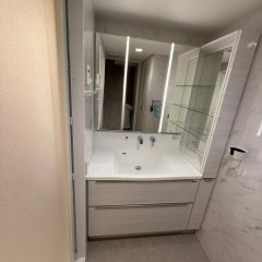 洗面室の壁は、傷と汚れに強いエマウォールをお選びいただきました。