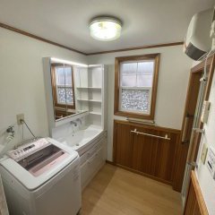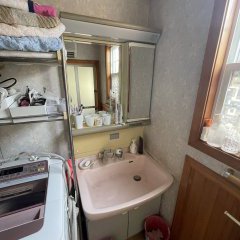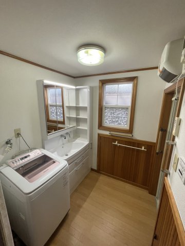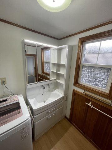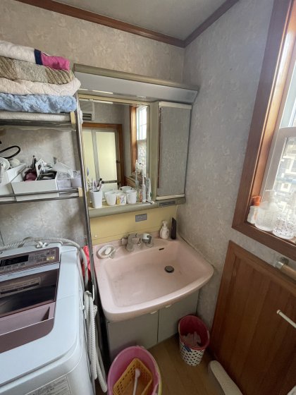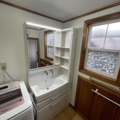 築25年以上の戸建住宅にて、洗面脱衣室の改修工事を行いました。限られたスペースでも収納力と使い勝手を両立するため、タカラスタンダードの『オンディーヌ』750サイズの洗面化粧台に、150mm幅のトールキャビネットを組み合わせて設置いたしました。