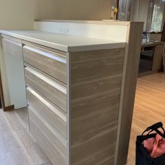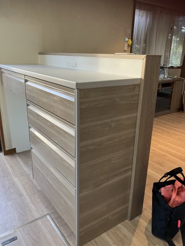 キッチンの交換・カップボード設置に加えて、床の上貼り工事を行いました♪