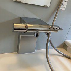 今回は浴室の台付サーモスタット水栓の不具合により、交換工事を行いました。