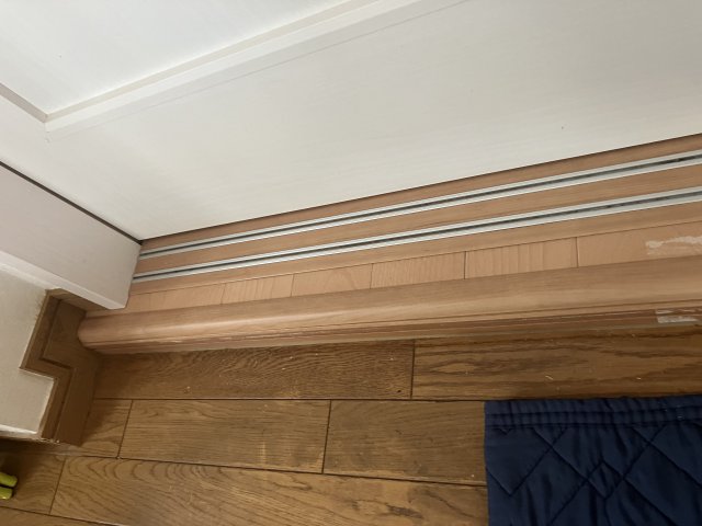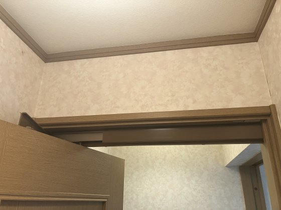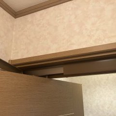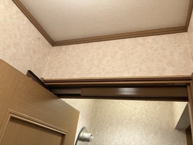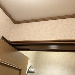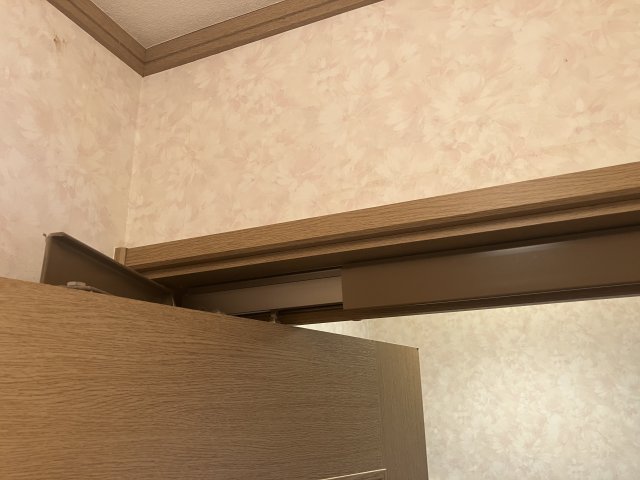 併せて、トイレ入口折戸の上部に生じていた不具合も修復しました。開閉時の引っかかりを解消し、スムーズな動作と見た目の改善を実現しています。