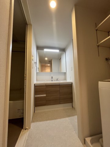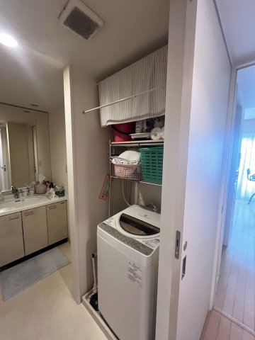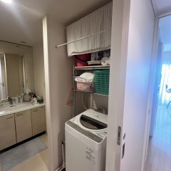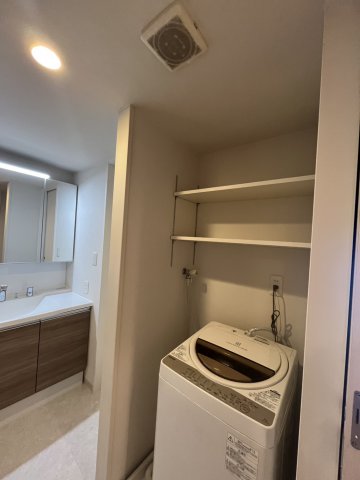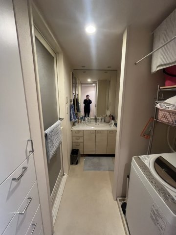 今回は、洗面台の交換とそれに伴い、洗面所の内装の貼替、洗濯パン交換、洗濯機上可動棚設置しました。