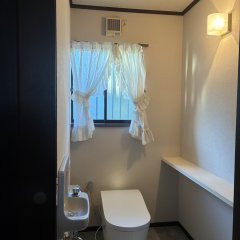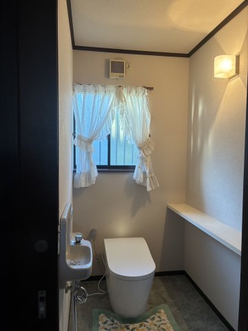 トイレ本体の金属調のアクセントと便器裏のバックライトと合わさって高級感のある一室に仕上がっています。