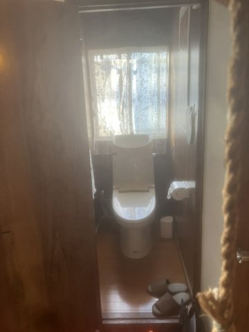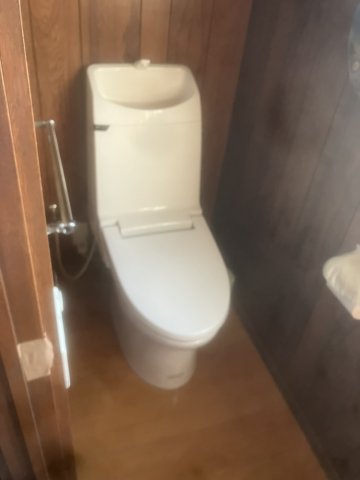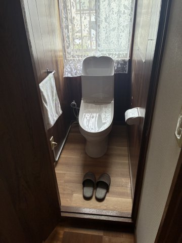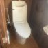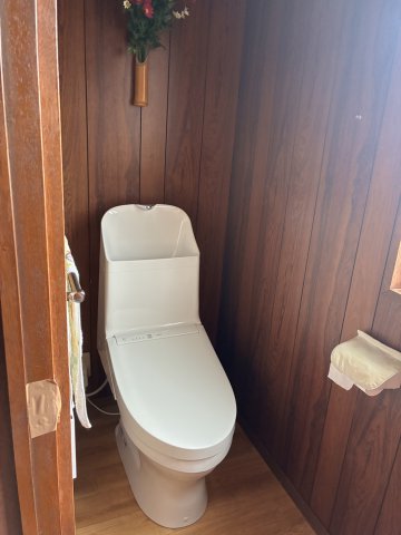 また、床に前の便器の跡(黒ずみ)が残っている可能性があったため、フローリングの上からクッションフロアを貼りました。
