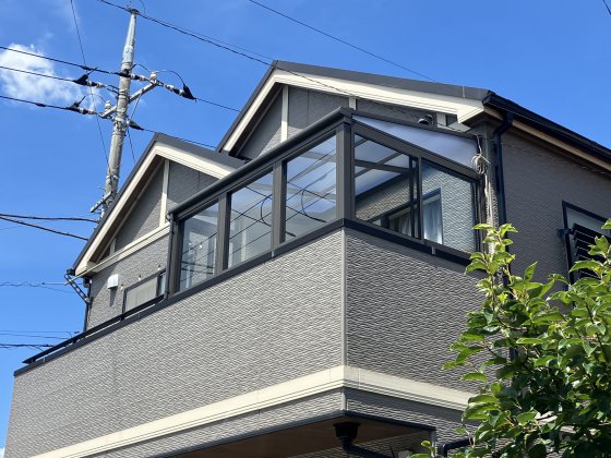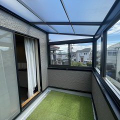 今回のベランダサンルーム新設工事でも、遮熱性の高い屋根材を使用し夏場の熱気を軽減することで、年間を通して快適に過ごせる空間づくりを意識しました。また、左右の窓は開閉式にすることで、通風性と使い勝手を両立。お客様のご要望に沿った、機能性と快適性を兼ね備えた仕上がりとなりました。
