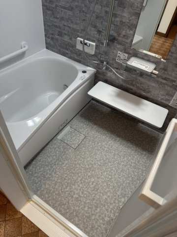 白とグレーをベースにまとまった浴室へ仕上げさせていただきました!