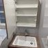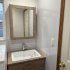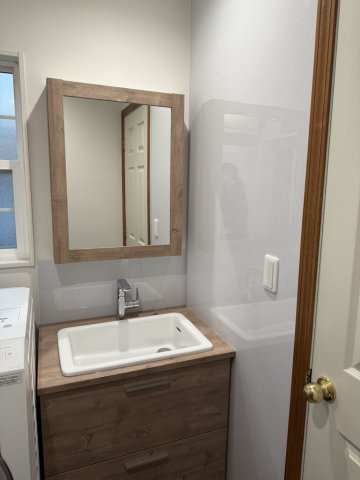 水撥ねを考慮して、ミラーと化粧台の間はパネルで仕上げました!