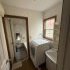洗面は窓枠が干渉しないようにするために【木枠一面鏡(収納付き)】(幅60㎝)をご提案。