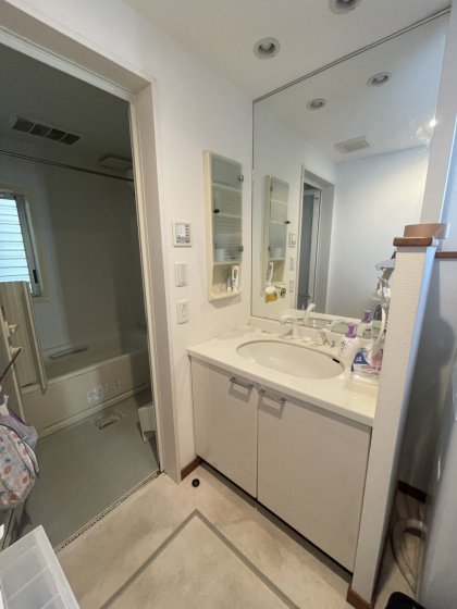 今回は洗面化粧台の交換と一部内装貼替を行いました。