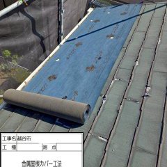 屋根のリフォームは工法がいくつかあるのですが、今回はカバー工法で既存の屋根の上にルーフィング材を敷きガルテクトを重ね張りしました。軽量かつ高耐久な金属屋根材により、建物への負担を抑えつつ、断熱性・防水性を向上させました。
