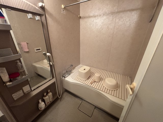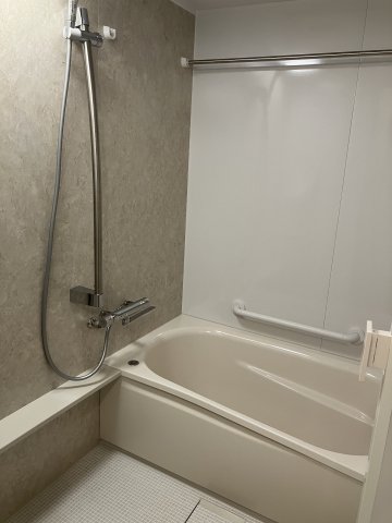 魔法びん浴槽、お掃除ラクラクほっカラリ床、お掃除ラクラク排水口、コンフォートシ ャワーバー等 基本仕様に手摺をつけ扉を開きドアにしました。