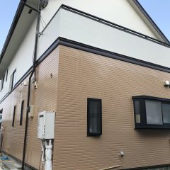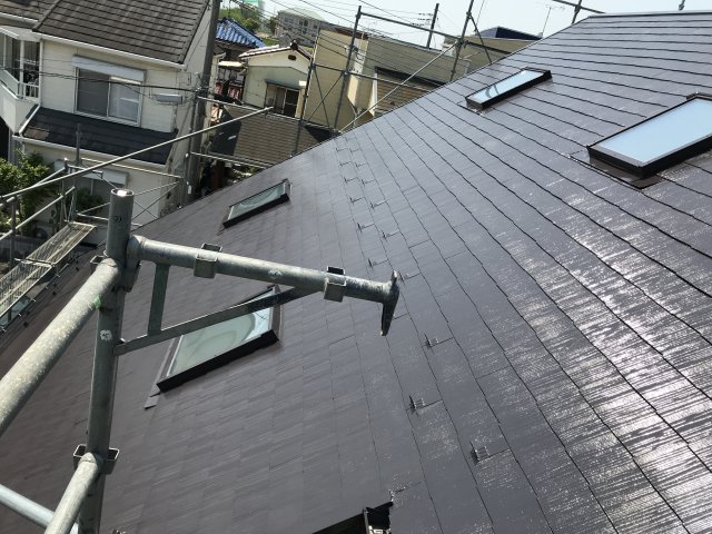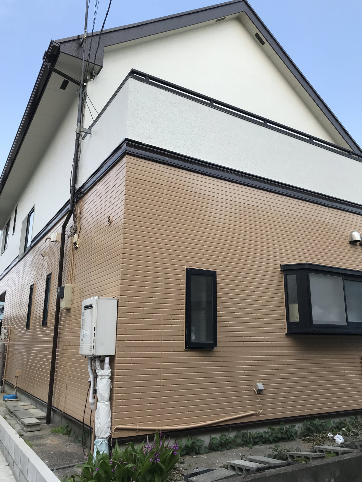 シリコン塗料を使用して施工しましたが、元々のピンク色からイメージチェンジになりました。