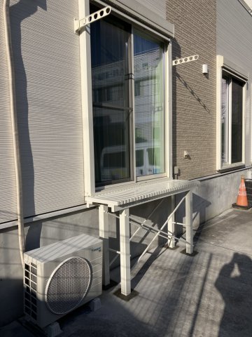 窓の外に壁付け物干しを設置して、外干しできるスペースを増やしたいというご依頼を頂きました。