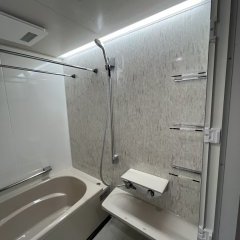 今回のリフォームでは、浴室に**タカラスタンダード「プレデンシア」**を採用しました!鋳物ホーローならではの重厚感と高い保温性で、心地よい入浴時間を実現しました。耐久性にも優れ、長く美しさを保てるのが魅力です!!