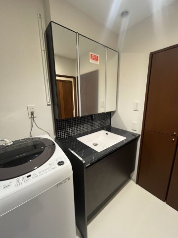 洗面化粧台には**LIXIL「ルミシス」**を選定。上質な素材感と洗練されたデザインが特徴で、収納力と機能性も兼ね備えています。空間全体に高級感を演出しながら、使いやすさにもこだわった仕上がりになりました。