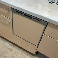 Panasonic製食洗機「RS9」への交換工事を実施しました。既存キッチンの面材を再利用することで、デザインを維持しながら最新機能を導入しました。