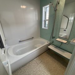 既存のタイルユニットバスから、断熱性・お手入れ性に優れた 最新のシステムバスへリフォームいたしました。