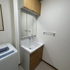 洗面所の内装を貼り替えることで、周囲の洗濯水栓やスイッチ、タオル掛けなどが相対的に古く見えてしまう可能性があるため、見積の段階から併せて交換をご提案させていただきました。