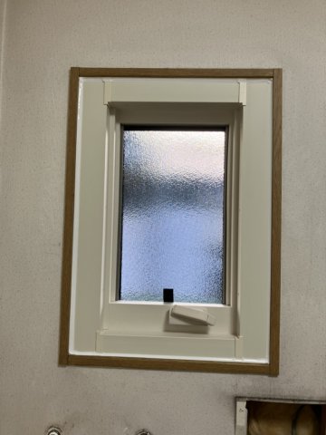 なお、洗面所の窓につきましては、寸法の都合上、上げ下げ窓での製作が不可能だったため、現場にてお客様とご相談のうえ、不審者の侵入が不可能なサイズであることを確認し、すべり出し窓へ交換いたしました。