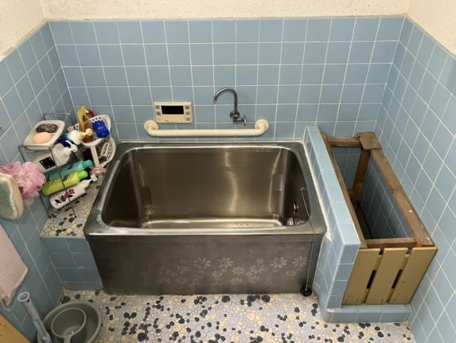 これまで使われていた1000mmのステンレス浴槽を撤去し、