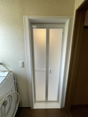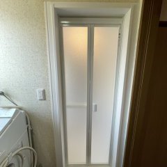 新しく設置したホワイトの折れ戸とも相性が良く、脱衣場が明るい印象になりました!