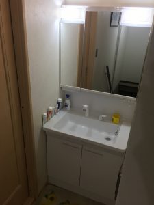 洗面化粧台を交換希望であったM様。使用していた洗面台から水漏れしていたので、この際洗面台ごと交換を希望されてご来店頂きました。