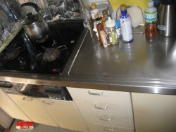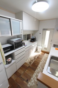 ホーローは何といってもお手入れが最も楽な素材で、長年使用していても、劣化が無い素材です。勿論、腐食など一切ありません。それと合わせて、カップボードも対面でセットで交換されました。