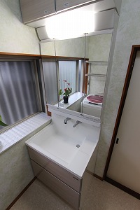 今までの浴室はタイル張りで、冬場はとても寒く、窓も大きかった為そのあたりを気にされていました。また洗面脱衣所も古くなってきており同時にリフォームを検討されていました。浴室と洗面室を同時にリフォームされる方は約9割程度です。その理由は浴室の入口も交換になるため、どうしても洗面室の壁や床の改修が入るためです。例えば浴室だけリフォームして、後から洗面室を工事すると同じ部分を2度工事しなければならなくなり、費用が嵩んでしまうからです。