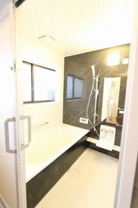 寒々しいタイルの浴室をシステムバスに入替えしました。 断熱仕様なのでお湯も冷めにくく、システムバス内部も快適です。 アクセントに黒の石調にしました。給湯設備もエコキュートのフルオートにしたので便利になりました。