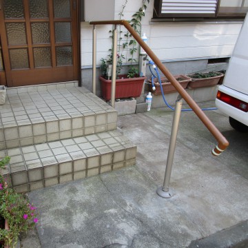 高齢のお母様を心配して、玄関前に手すりを設置しました。