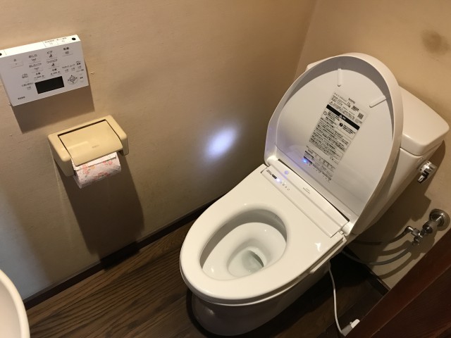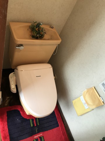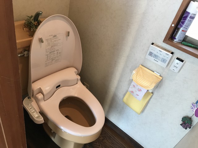 ウォシュレットは自動開閉機能が付いたアプリコットのハイグレード機種です。