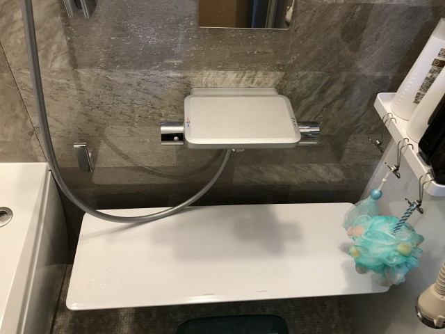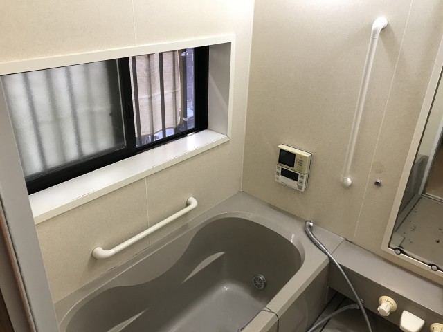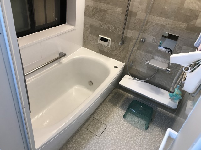 アクセントパネルの色が映えるきれいな浴室になりました。
