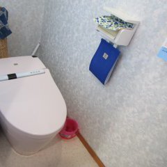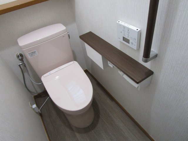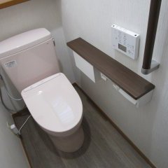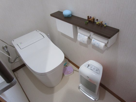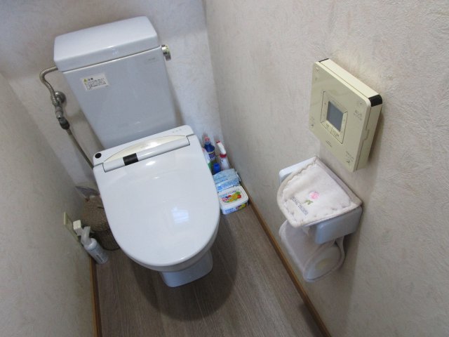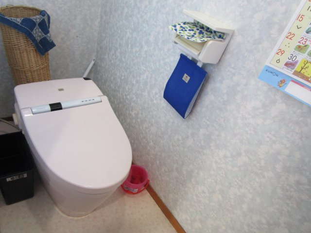 1階のトイレは、使用した後立ち上がると自動で水が流れる「自動洗浄」機能付きの便座を採用。