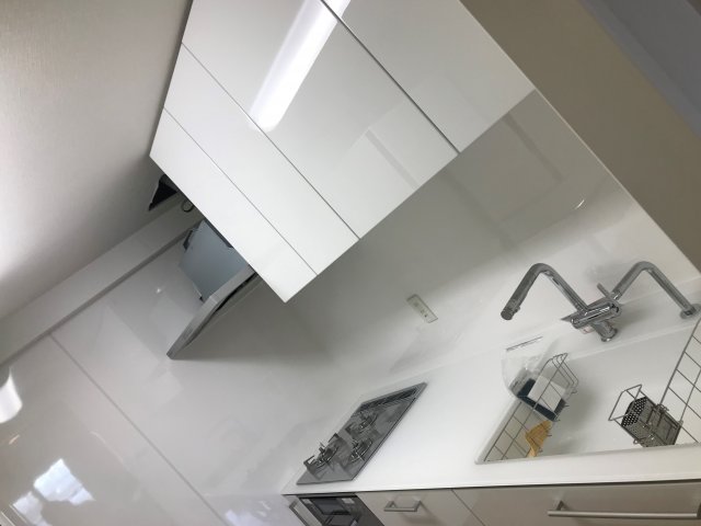 ・2wayタッチ水栓で収納棚不要な横長の照明付きカウンター