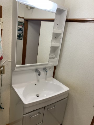 今回は脱衣所にスペースが余っていたため、ワイド600から750のものに交換致しました。