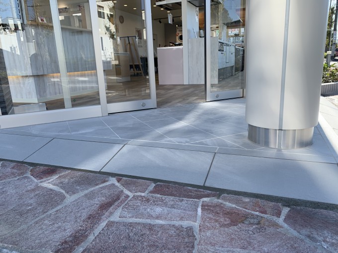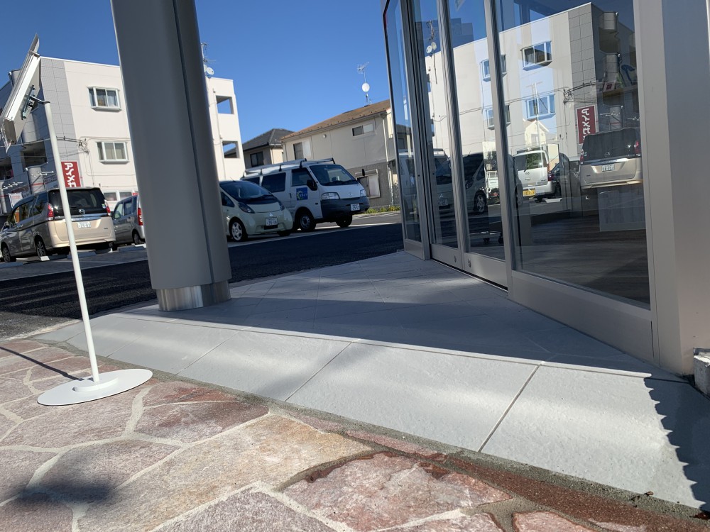 ショールーム入り口の段差解消工事を行いゆるやかなスロープを設置しました。