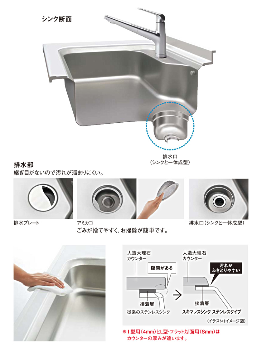 継ぎ目の段差や隙間は汚れがたまりやすく、雑菌の温床になってしまいます。