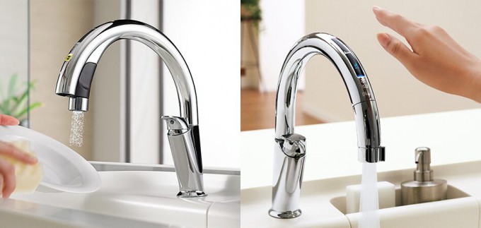 手や食材など洗いたいものを水栓の下に差し出せばセンサーが感知して自動的に水を出し離れれば勝手に止まります。
