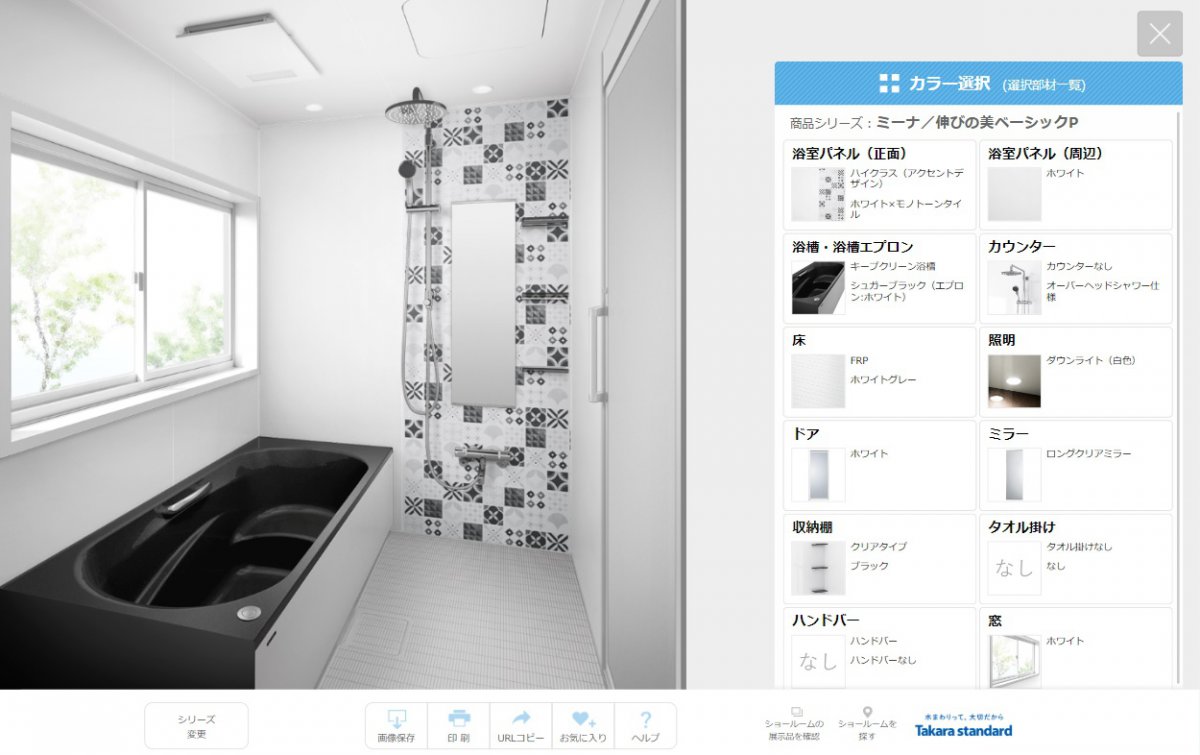 さて、各メーカーサイトでは、カラーシュミレーションが可能なのですが、タカラスタンダードさんも例にたがわずカラーシュミレーションができます。