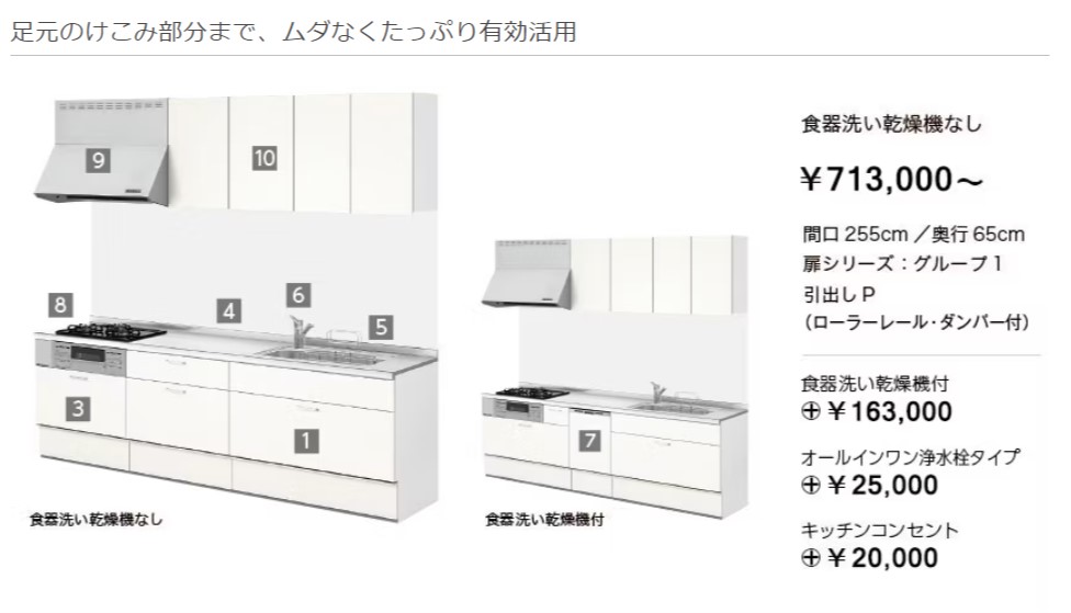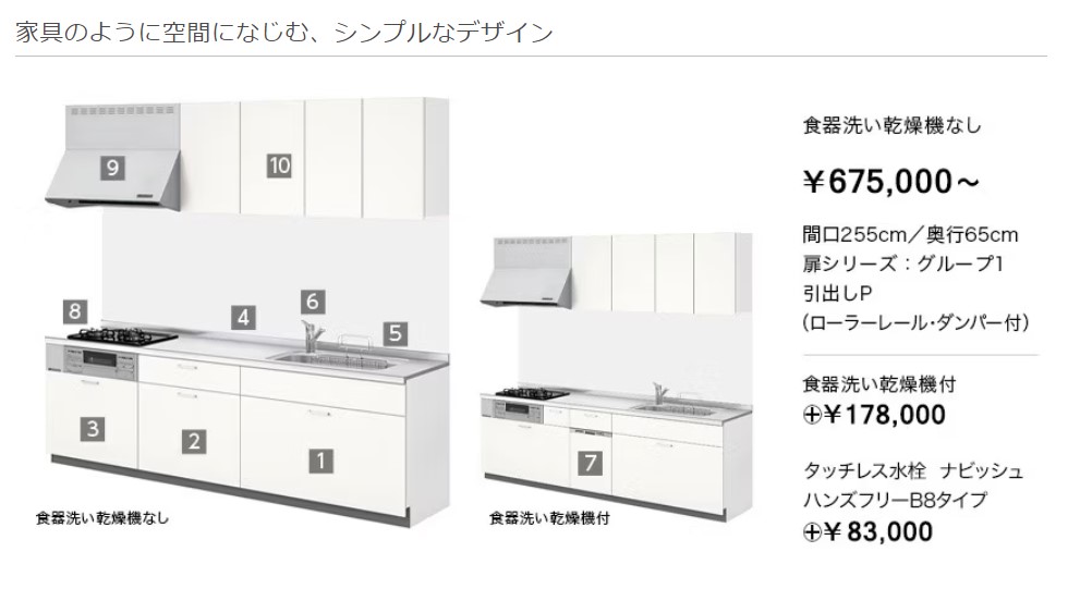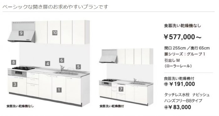 パッケージプランをどれにするか選んだあとは、加熱機器やレンジフード、