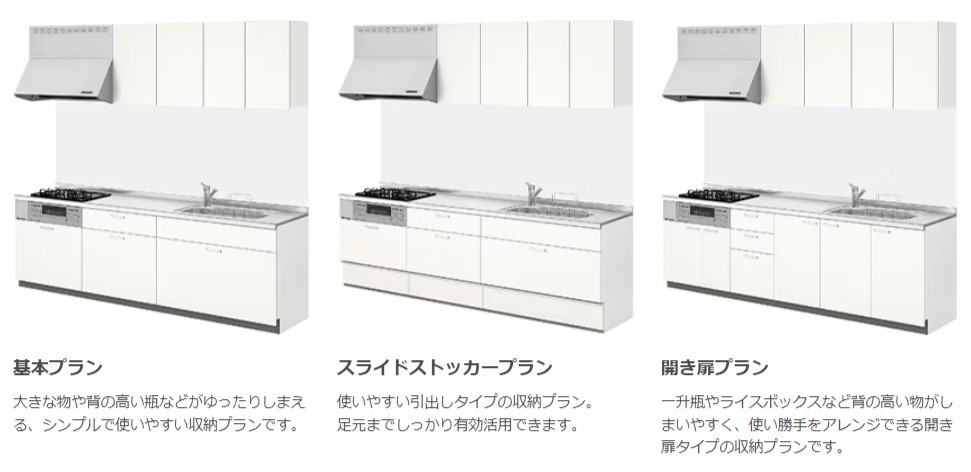 下記のパッケージプラン3種類の中から、ご自身の使いやすいキッチンタイプをお選びください。