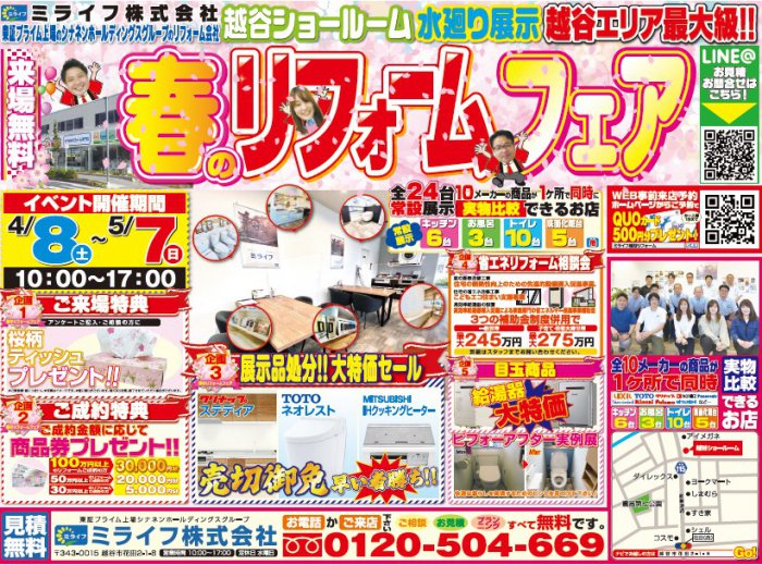 ミライフ越谷ショールームでは、5月7日(日)まで、