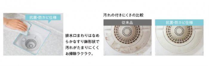 さらにトラップカバーを開けて見える部分すべてが抗菌・防カビ効果を持つ樹脂で、