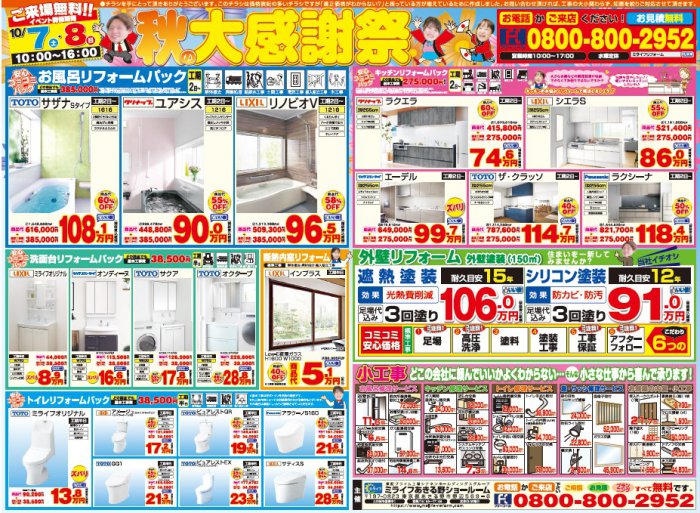 ・リクシル(エクステリア、システムバス、システムキッチン、トイレ、洗面台、玄関、二重窓など)